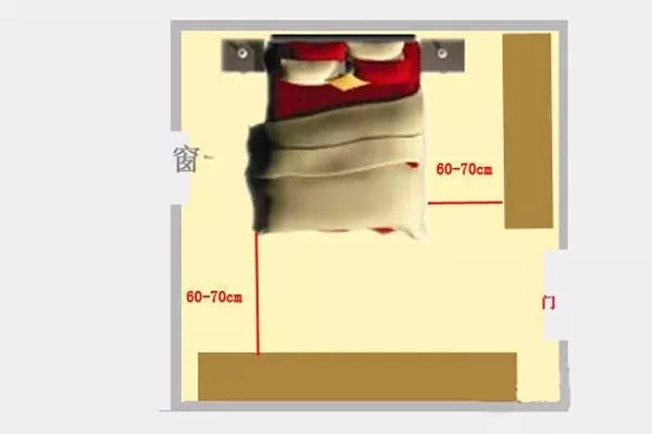 狹長形狀的不規則空間,建議將衣柜擺放在兩側,柜與床架間的距離不應該抄果500px。