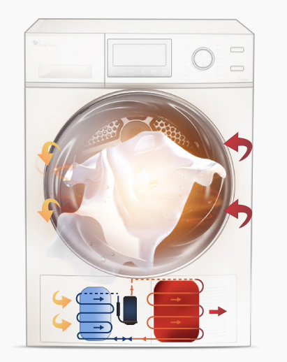 熱泵式干衣機完美的利用了能量搬運的特點,烘干時效率高,也不會排放濕氣。