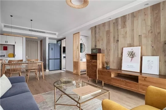 如果在吊頂造型方便不方便做區分的話,也可以通過在墻面的造型、用材、顏色等方面去做區別,讓客餐廳空間相互打通又保持獨立感。