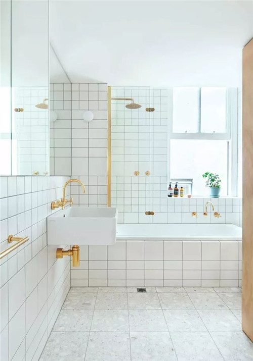 浴室鋪了白色方格瓷磚