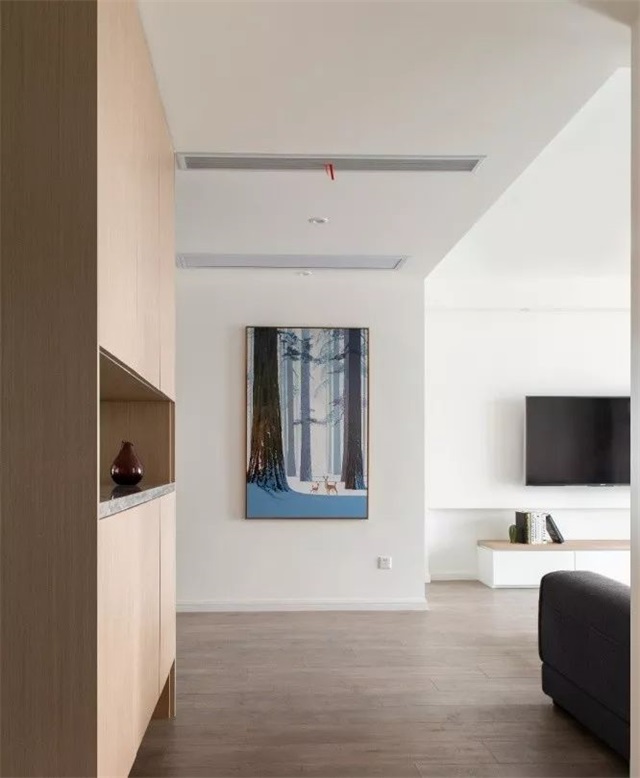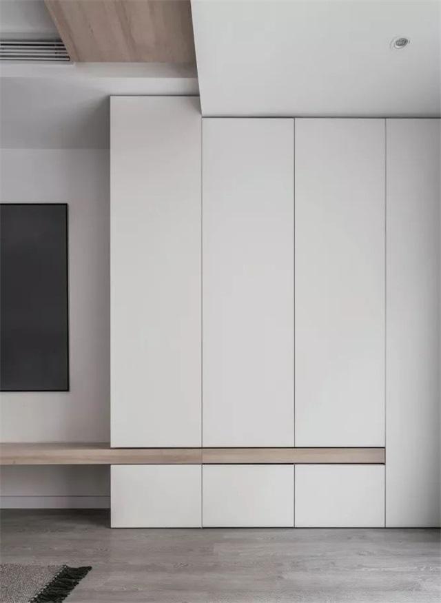 墻面不做過(guò)多裝飾,盡量保持干凈簡(jiǎn)潔的面貌,巧妙地弱化其存在感。 如果你覺(jué)得家里太單調(diào),也可以選擇用一個(gè)偏日系的亮色家具來(lái)點(diǎn)綴,讓空間充滿生氣。