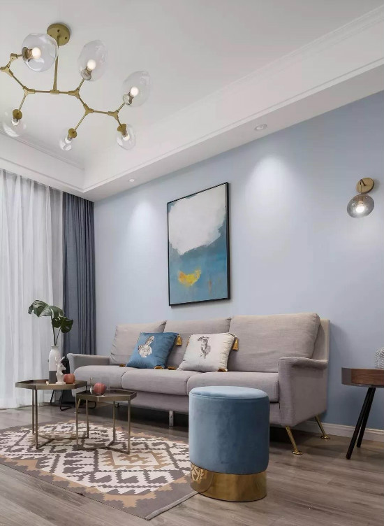 藍天與白云,總是能給人以自然輕松的遐想,在白色天花頂?shù)幕A(chǔ),當墻面刷墻淡藍色的話,那么整體視覺效果都會是充滿愜意舒適的自然氛圍了。