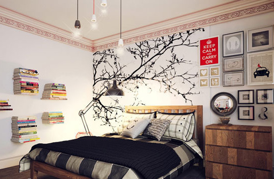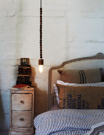臥室床頭吊燈不僅能解放出床頭柜面上的空間,如果設計別致,還能提升臥室格調。那些別致的床頭吊燈,它們或嫵媚或陽剛、或可愛或充滿創意,而臥室也隨著不一樣的吊燈展現出不一樣的情調。這個床頭風景的設計結合了很多的自然元素,以樹狀做床頭柜,以竹籬笆裝飾墻頭墻面,清新自然。
