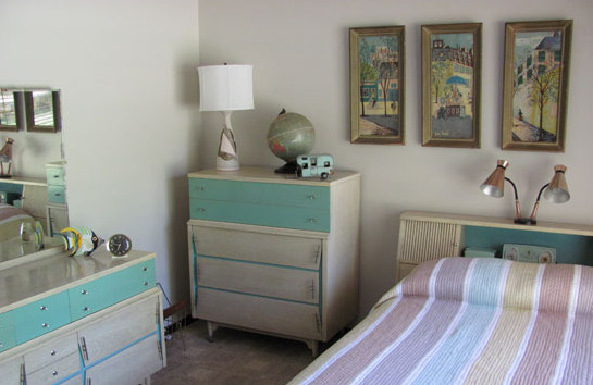 多數人雖然喜歡有創意的燈具設計,但出于保守的整體臥室風格考慮,最終依然會選擇中規中矩的燈具。這個八十年代風格的臥室搭配一個老款射燈,就是個不錯的選擇,簡單的外形和整潔的臥室相得益彰,暖暖的燈光讓臥室充滿溫馨。