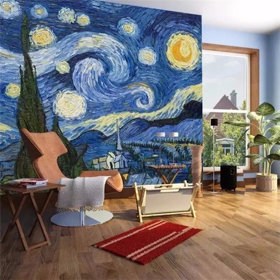 采用色差較大的不同類型壁畫拼圖作壁爐的背景墻,元素多樣和色彩鮮明的特點有拼湊出來的感覺,不同于主流的搭配體現非凡的藝術造詣。
